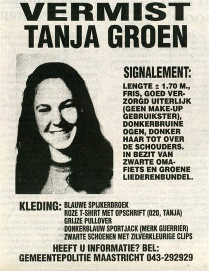 Ik weet zeker dat jullie nooit zo'n verdachte tanja groen. Binnenkort gaat de politie opnieuw zoeken naar de verdwenen studente tanja groen, die verdween tijdens een nachtelijke fietstocht bij maastricht.